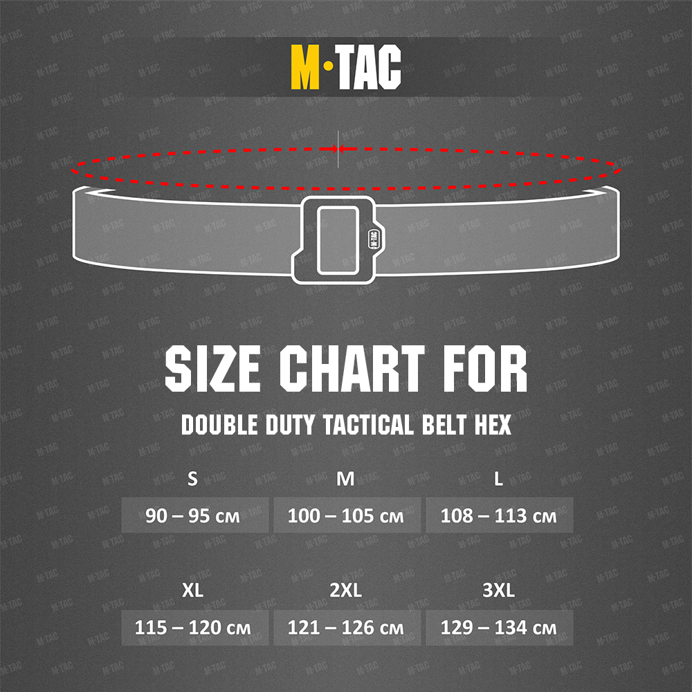 M-TAC Double-Duty Hex must taktikaline vöö on loodud pidevaks ja pikaajaliseks kasutamiseks. Vöö koosneb kahest vastupidavast nailonlintist, mis on kokku õmmeldud tugeva niidiga. Materjali tihedus võimaldab kanda vööl holstreid ja kotte. Vöö kinnitatakse talje ümber universaalse klambriga, mis on valmistatud vastupidavast polümeerist. Materjal: Nailon Klambermaterjal: Polüamiid Klambrite tõmbetugevus: 170 kg Vöö laius: 40 mm Suuruste tabel: S 105 cm M 115 cm L 122 cm XL 129 cm 2XL 136 cm 3XL 143 cm
