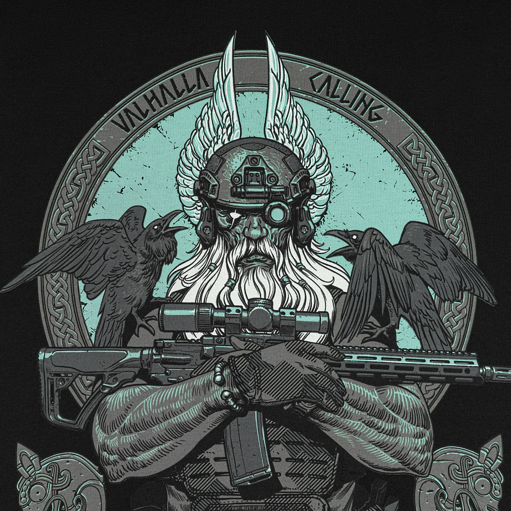 M-Tac has expanded its product line inspired by the supreme god of Scandinavian mythology with the release of the new thematic hoodie, Odin Mystery Black. The design features a determined Odin, who has swapped his traditional spear, Gungnir, for an AR-15 rifle. Clad in modern combat gear and wearing a night vision helmet, he is prepared to lead his warriors into the final battle. Perched on Odin’s shoulders are his faithful companions—the ravens Hugin (representing thought) and Munin (representing memory)—who soar across the nine worlds daily, reporting back to the supreme god about all that occurs. “Valhalla Calling” is a contemporary interpretation of the legendary battle cry of the Vikings, “Till Valhalla,” which they boldly shouted as they went into battle. Every Viking aspired to be glorified in combat and to reach Valhalla—Odin’s palace—where warriors would feast while awaiting the final confrontation known as Ragnarok. The M-Tac cut of the Odin Mystery Black hoodie allows for free movement during physical activities. The comfortable hood is adjustable for a snug fit and provides excellent protection against wind and inclement weather. The cuffs and the bottom of the hoodie are made from knitted elastic, which helps retain their shape and prevents cold air from entering. Material: cotton, elastane; Printing: MagnaColours® (Premium inks resist fading)