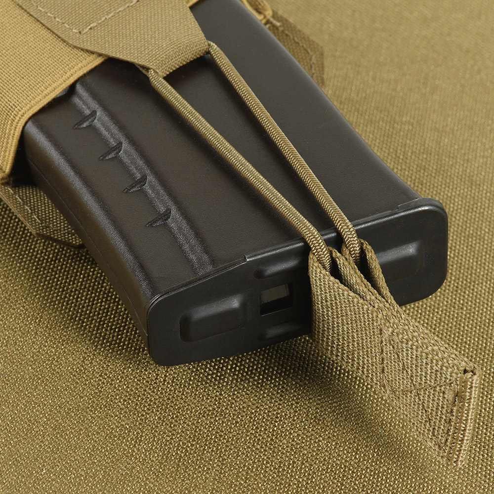 The Elite Laser Cut Single Magazine Elastic Pouch is a functional piece of equipment designed to securely hold and transport an AK/AR series magazine. Made of high-quality Cordura 500D, a super-strong fabric, resistant to abrasion and high loads. Reliable attachment is provided by a strap and an elastic cord, which guarantee protection against falling out. The compact dimensions allow you to easily place three or more pouches on your equipment, depending on the type of plate carrier. Easily attaches to equipment with a MOLLE interface, made from a polymer composite using laser cut technology. The pouch will allow for quick reloading and become an essential element of a fighter39;s individual equipment. Material: Cordura 500D
