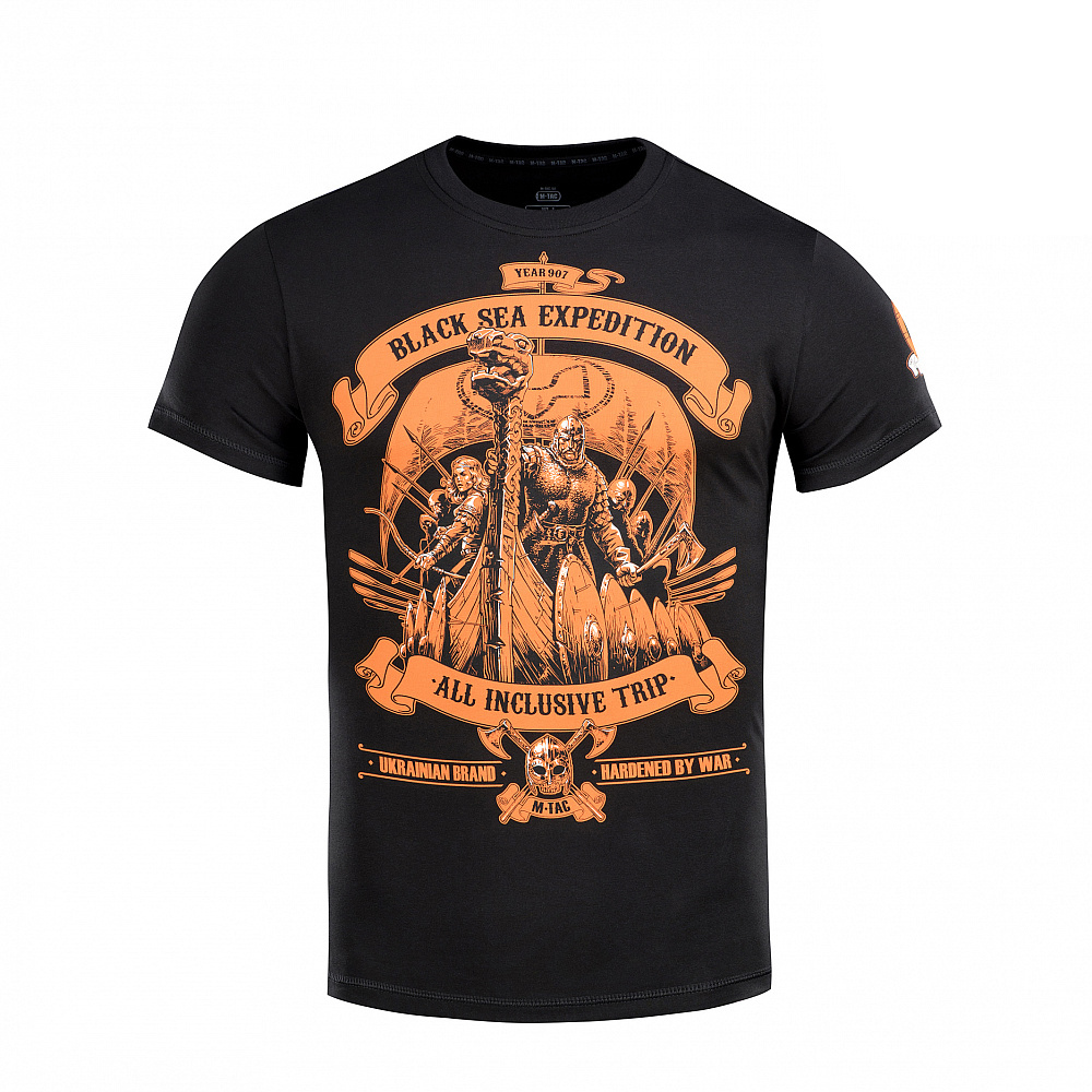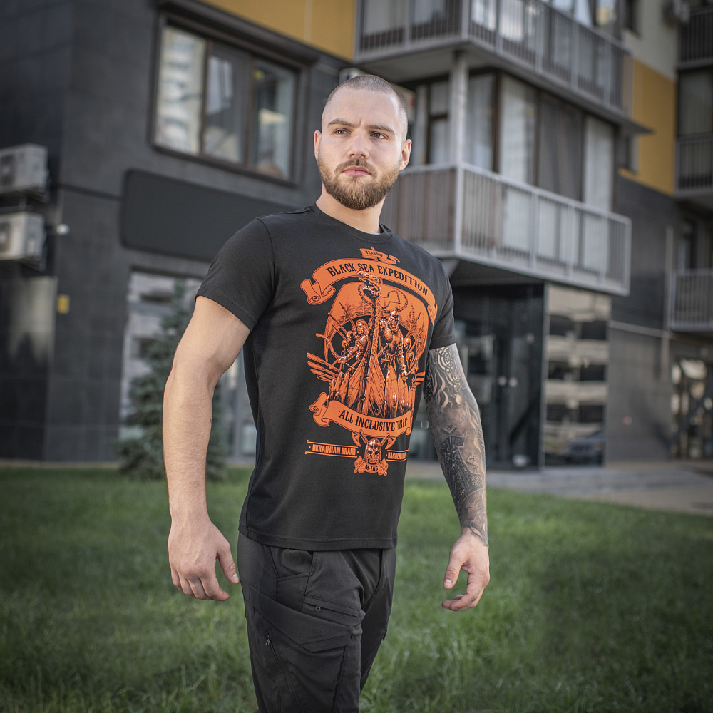 M-Tac presents the Black Sea Expedition T-shirt . The M-Tac T-shirt is 93% cotton; the remaining 7% is elastane. Thanks to this, the T-shirt can withstand a lot of washes and does not lose its shape. A T-shirt is a must-have for any man’s wardrobe. The area of application of our T-shirts is huge – from everyday wear to use as uniforms for military units and security forces and for people who lead an active lifestyle and like hunting, fishing, sports, tourism. Thin, elastic, and high-quality knitwear successfully emphasizes the relief of the muscles and gives a complete feeling of comfort. Tired of routine office work and already counting the days when you finally go on holiday to somewhere warm M-TAC company offers a unique opportunity to go on an expedition to the Black Sea! Survival in the wild, mass raids on enemies, and treasure hunts in the “All-Inclusive” package. Hurry, the number of seats is limited! Material: 93% cotton 7% elastane Printing: MagnaColours® (Premium inks resist fading)