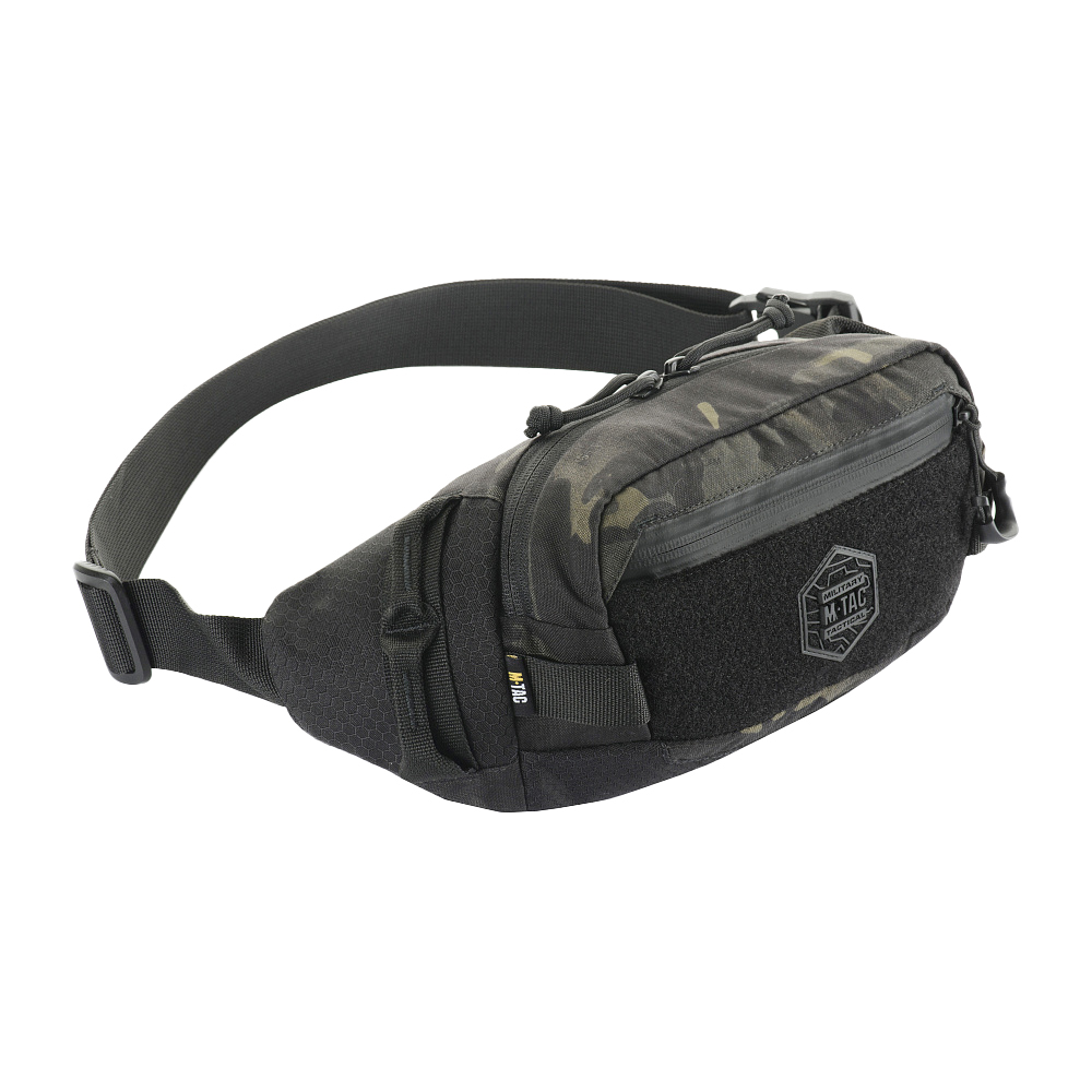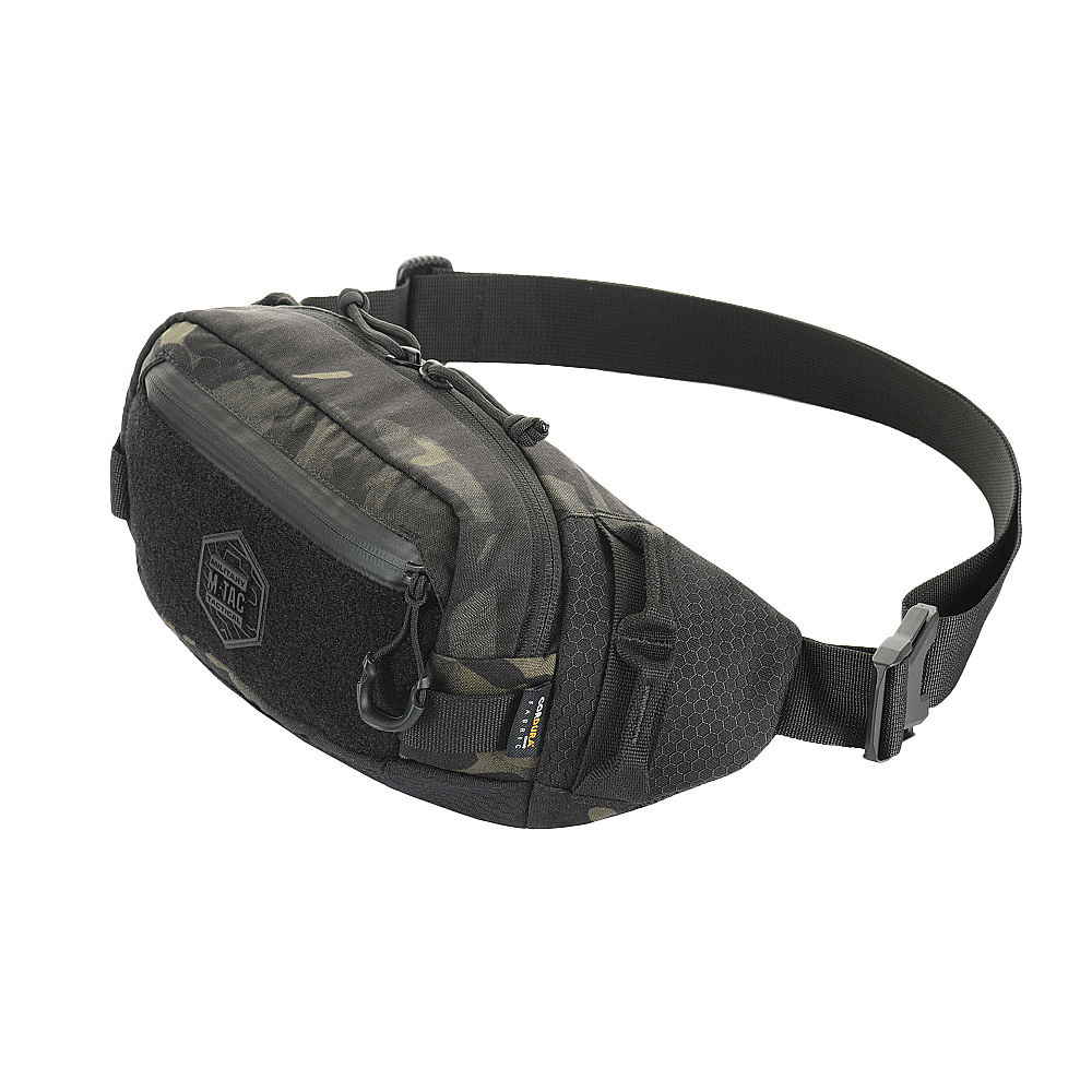 The compact Waist Bag Elite Hex by M-TAC has a stylish look and well-thought functionality. Made of Cordura 500D and Cordura Hex 1000D – heavy-duty, wear-resistant and easy-clean fabric. Zippers and buckles by YKK and Woojin, the world leaders in the production of fastening products. The adjustable shoulder strap with quick release buckle allows to carry the bag both over the shoulder as well as the waist. The Waist Bag Elite Hex has 2 compartments to fit your everyday’s set. The designers equipped the main pocket with two small modular inserts attached to the back wall made of Velcro. On the opposite side is a small mesh pocket for documents or other valuables. On the front of the bag there is a cut-in pocket with a waterproof zipper and a Velcro panel with a stylish hexagonal company’s logo. There are special loops on the side for hanging additional equipment. The back of the bag is made of a soft damper mesh with a hole for a phone. Waist Bag Elite Hex fixes comfortably on the body and doesn’t take much space . Materials: Cordura 500D Cordura Hex 1000D Fittings: YKK Woojin Bag measurements: Strap length: 90 cm Depth: 10 cm Capacity: 2.7 l Width: 27 cm Height: 15 cm