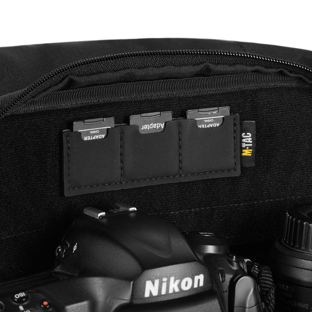 The M-TAC MODULAR SD CARD INSERT (3 SECTIONS) – BLACK is a modular accessory designed to securely store and organize up to 3 SD cards. The insert is made from Hypalon, a tough material resistant to mechanical damage, waterproof, and UV-resistant. For added durability and convenience, it is reinforced with the Tegris thermoplastic composite. It attaches to the inside of compatible bags or backpacks (designed for modular inserts) using Velcro fasteners. Materials: Hypalon, Tegris Attachment: Velcro Size: 10 x 3.3 cm Capacity: 3 SD cards