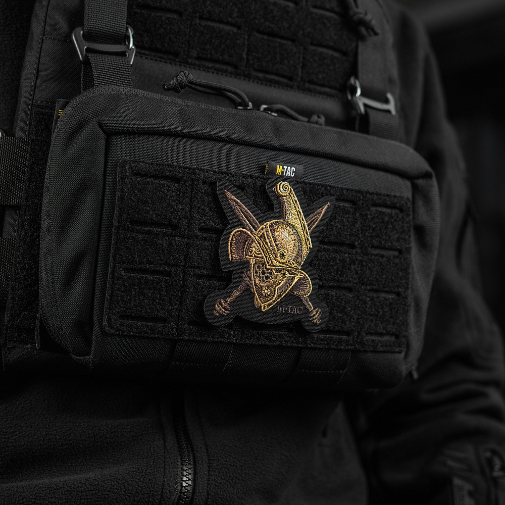 Vana Rooma gladiaatorid, kes võitlesid elu ja vabaduse nimel, teenisid vabaduse oskuse ja julguse kaudu. Paatš näitab mirmillo gladiaatori kiivrit ja ristatud gladius mõõku, sümboliseerides nende tuntud nime. Täna kehastab see uskumusi nagu “tapa või ole tapetud.” Valmistatud vastupidavast 500D Cordurast, mis on vastupidav kahjustustele ja päikesevalgusele, lisab paatši värvikas tikand elegantsi. Lihtsalt Velcro’ga kinnitatav, on see originaalne lisa teie kuvandile, sisendades kartmatust ja võitlusvaimu igas vastasseisus ning julges vabaduse poole püüdlemises. Suurus: 8×8.5 cm Materjal: Cordura 500D Kinnitus: Velcro