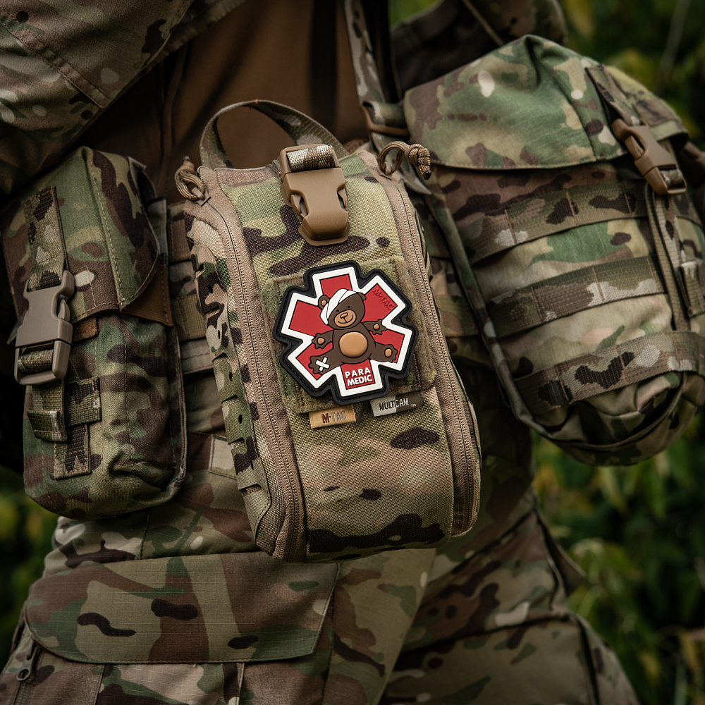 Combat medics are real heroes 24 hrs on the battlefield who evacuate, treat, rehabilitate and save the lives of our soldiers. M-Tac has released a new patch, which was created specifically for medical workers who, constantly risking their lives, provide emergency aid to military personnel even before hospitalization. The patch is made in the form of the “Star of Life” – the main emblem of the Emergency Medical Service. According to one version, the six rays of the star symbolize the six main tasks that paramedics solve in emergency situations: detection, notification, appropriate response, on-site assistance, assistance during transportation and transfer to a specialized assistance center. In the middle of the patch is a teddy bear that has already received medical help. It is the best image to show the humanity and nobility of paramedics, who during the war rescue not only military personnel, but also all civilians and those who need their help. The patch is made of high-quality PVC material (polyvinyl chloride) using 3D technology with full-color printing. Thanks to the special production technology, the patch looks voluminous, and the image is very realistic. Attaches to clothing or equipment with Velcro. Dimensions: 7.8 x 8 cm Material: PVC Features: velcro for fastening