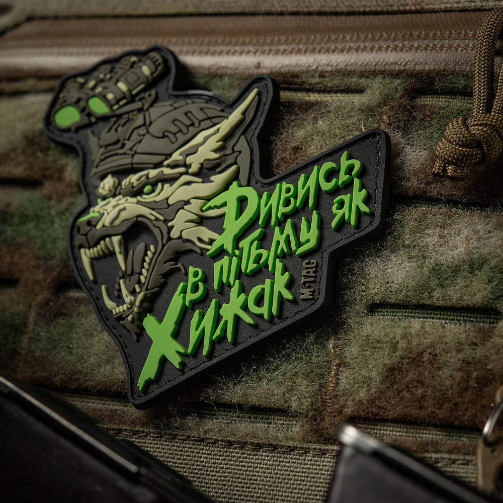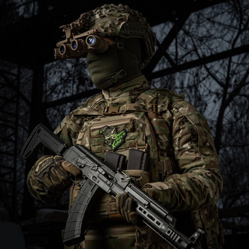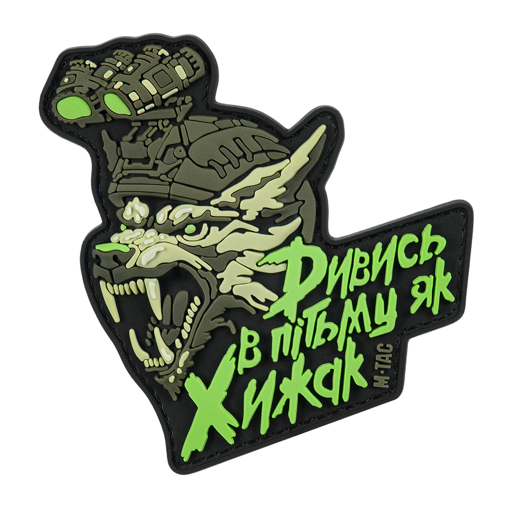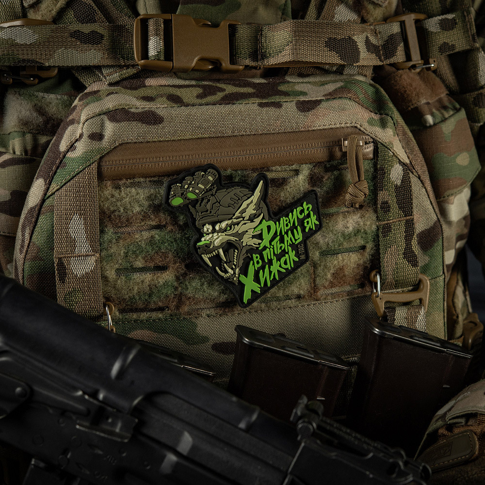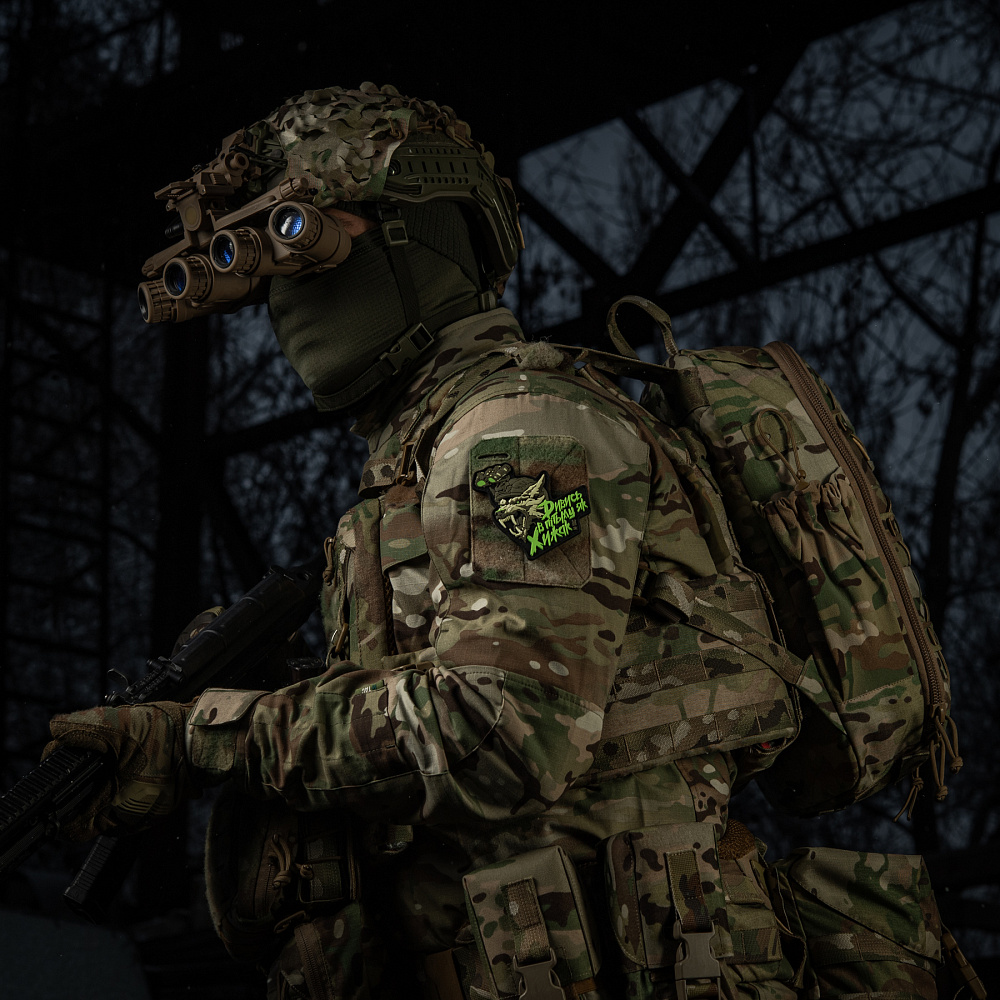 M-Taci disainerid on loonud uue PVC “NÄE TUMEDAS NAGU RÜNNAJA” PLEKI, mis on pühendatud meie sõjaväe eliidile – Erilised Operatsioonijõud. See on suurepärane lisa mitte ainult sõjaväelaste, vaid ka kõigi sõjaväe stiili fännide kollektsiooni. Plekki pilt on sümboolne SSO jaoks – moderniseeritud hunt kiivris öönägemisseadmest. See on röövloom, kes on öine, kaval ja osav jahimees, halastamatu oma saagile. Nagu hundid, on SSO operaatorid öised jahimehed, kes täidavad oma tööd hoolikalt, jättes oma vaenlastele nullvõimalusi. Hundi pilt täiendab pleki peal olevat kirjutist, mis on stiliseeritud roheliseks nagu öönägemisseadme filtris: “Näe pimedas nagu Ründaja.” Ära ole saak – ole ründaja! Plekki on valmistatud kvaliteetsest PVC (polüvinüülkloriid) materjalist, kasutades 3D-tehnoloogiat, tänu millele näeb see välja mahukas ja pilt on väga realistlik. Plekki saab kasutada igasuguste riiete või varustuse puhul, millel on Velcro.