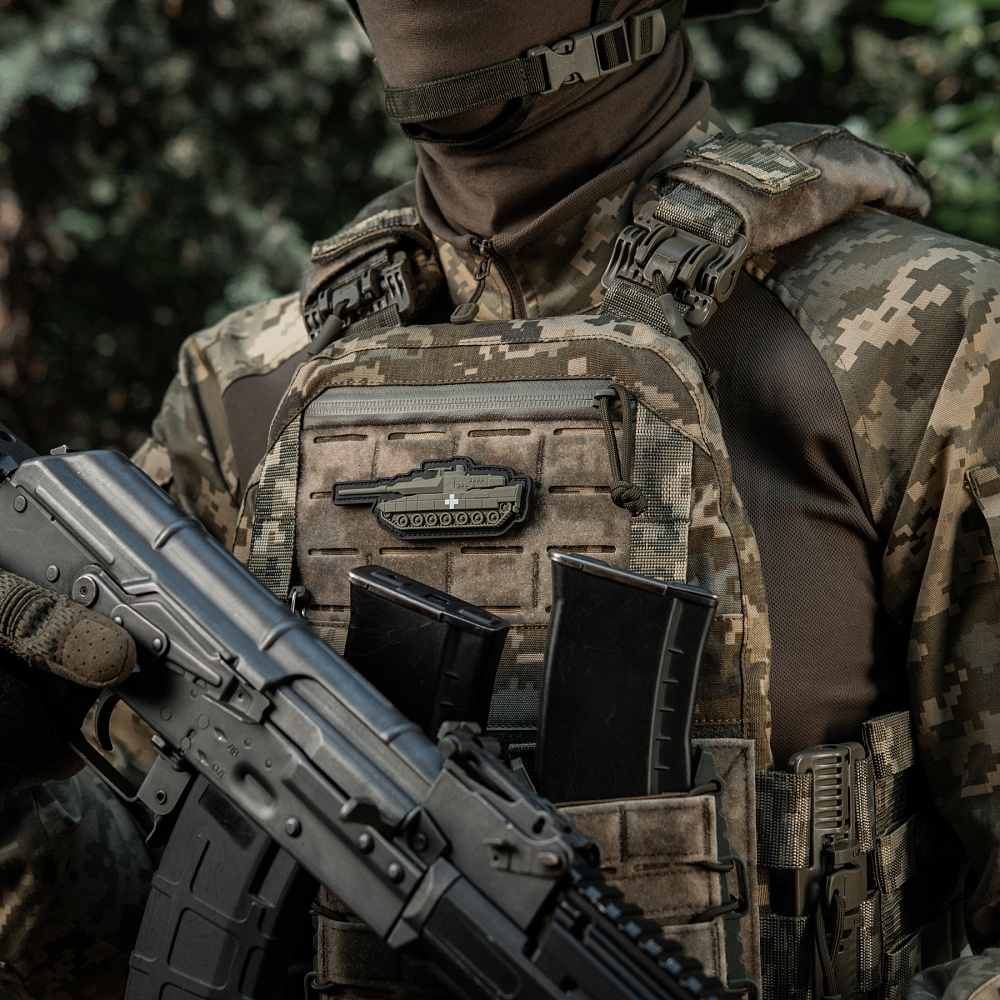 This original patch from M-Tac brand is dedicated to the counteroffensive of the Armed Forces of Ukraine! The patch is made in the form of a Leopard 2 tank – a powerful armored combat vehicle, which is considered to be one of the best in the world. Thanks to its maneuverability and advanced technical characteristics, the Leopard 2 is capable of performing a variety of tasks, including anti-tank defense, target attack and infantry support on the battlefield. Today, the soldiers of the Ukrainian Armed Forces also use these deadly beasts to defeat the invaders and cleanse the Ukrainian land of the invaders. A white cross is depicted in the middle of the tank, because it is with this sign that the equipment of the Armed Forces of Ukraine goes on the offensive. The white cross has a historical background and a sacred meaning for the Ukrainian people. According to one version, the equilateral cross is considered the banner of the Cossacks and the banner of victory. A similar cross was one of the elements of the coat of arms of the founder of Zaporizhzhya Sich, Dmytro Bayda-Vyshnevetskyi, Hetman Bohdan Khmelnytskyi, and was also depicted on the flags of various regiments of the Zaporizhzhya Army. The patch is made of high-quality PVC (polyvinyl chloride) material using 3D technology, due to which it appears voluminous and the image is very realistic. Attaches to clothing or equipment with Velcro. Material: PVC (polyvinyl chloride) Size: 9.5 x 3.5 cm
