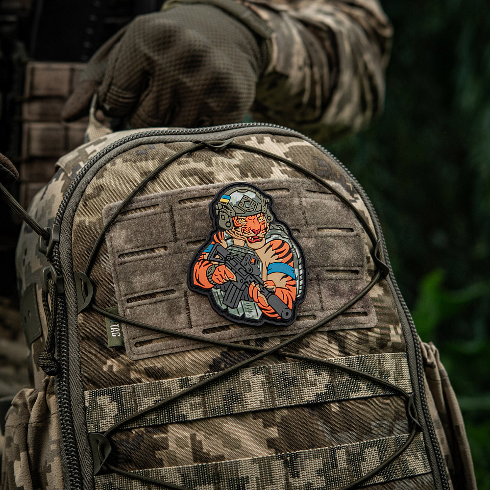 Alates täiemahulise sissetungi algusest on sõjaväes ilmunud väljend, et meeleheitlikke ja julgeid Ukraina võitlejaid nimetatakse “tiigriteks”. Meie sõdurite sõjakusest inspireerituna on M-Tac välja andnud originaalse motivatsiooniplaadi, mis on pühendatud tõelistele võitlustiigritele. M-Taci tiiger on varustatud Cuirass QRS plaadikandjaga ning FAST tüüpi kiivriga, millel on aktiivsed kõrvaklapid. Ukraina lipp on patriotlikult esitatud kiivril. Meie tiigri relv ei ole ainult küünised ja hambad, tema käppades on AR-15 ründepüss, mis on teenistuses paljudes NATO riikides. Tiigril on õlal sinine käepael, mis teenib Ukraina sõdurite lahinguidentifikatsioonina. Plaat on valmistatud kvaliteetsest PVC materjalist (polüvinüülkloriid) kasutades 3D tehnoloogiat täisvärvilise trükkimisega. Tänu spetsiaalsele tootmistehnoloogiale näeb plaat välja kolmemõõtmeliselt ja pilt on väga realistlik. Kinnitub riietusele või varustusele Velcro abil. Suurus: 9 x 7 cm Materjal: PVC Täiendavalt: Velcro kinnitamiseks