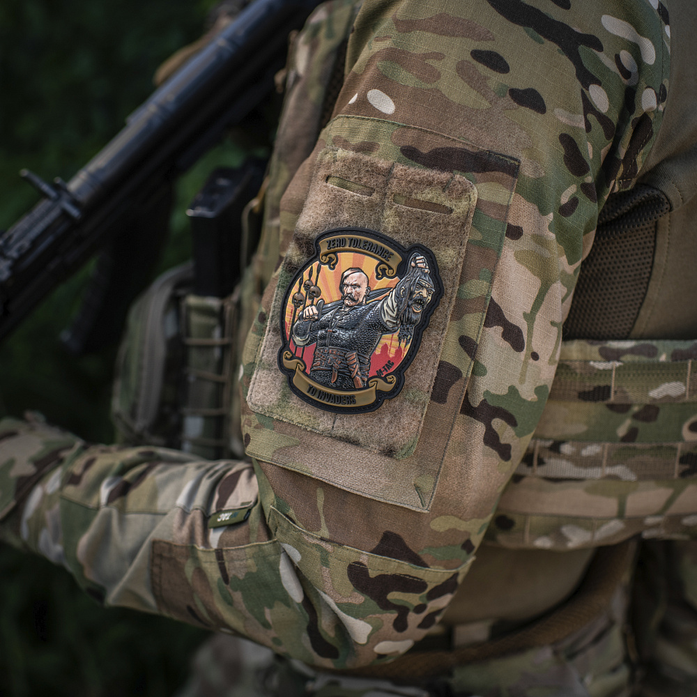 The Zero Tolerance patch from M-Tac shows the spirit of the heroic era of our ancestors and expresses the readiness to defend the native land from invaders. The patch depicts one of the soldiers of Yaroslav the Wise with a drawn sword in one hand and the severed head of the enemy raised in victory in the other. In 1036 Yaroslav the Wise together with his wife and troops inflicted a crushing defeat on the Pechenegs – invaders who had been raiding Kievan Rus for a long time. The defeat was so severe that the Pechenegs not only never again made campaigns in Kievan Rus, but also completely lost their dominant position in the steppes. Centuries have passed, but the traditions of our ancestors are still relevant. Therefore, “Zero tolerance to invaders” clearly makes it clear that we do not intend to tolerate aggression from anyone and are always ready to defend our homeland. The patch is made of high-quality PVC material (polyvinyl chloride) with full-color printing. Thanks to a special production technology, the patch looks voluminous, and the image is clear even at angles. Attaches to clothing, bags, backpacks or gear with Velcro. Dimensions: 8.7 x 9.7 cm Material: PVC (polyvinyl chloride) Additionally: velcro for fastening