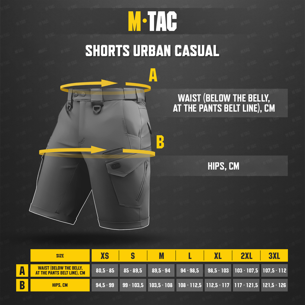 M-TAC URBAN CASUAL LÜHIKESSED on uus lisa spordirõivaste seeriasse, mis sobivad ideaalselt nii treeninguks kui ka igapäevaseks kasutamiseks kuumades ilmade. Need on valmistatud kvaliteetsest materjalist (77% puuvill, 18% polüester, 5% elastaan), mis on hingav, pehme ja tagab mugavuse kandmisel. Taskud on valmistatud 100% nailonist — kergest, vastupidavast ja veekindlast materjalist. Need sulguvad YKK tõmblukkudega ning lihtsama avamise/sulgemise jaoks on tõmblukukäepidemed varustatud peegeldava paracordiga. Hästi läbi mõeldud lõike tõttu ei piira lühikesed püksid liikumist, samas kui lai elastne vöökoht hoiab need kindlalt paigal. Täiendav vöö kohandamine on võimalik sisemise nööriga. Peamine materjal: 77% puuvill, 18% polüester, 5% elastaan. Tasku materjal: 100% nailon.