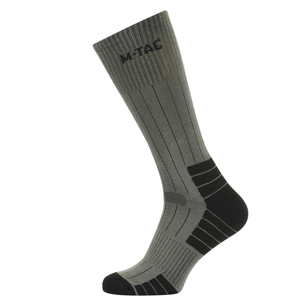 Tactical socks from M-Tac are one of the most popular products for men. They are made of high-quality material (78% cotton, 17% polyamide, 5% elastane). It is pleasant to the touch, elastic and provides excellent thermoregulation, as a result of which the socks do not overheat. A dense elastic opening fixes them well on the leg, preventing the socks from twisting or slipping. The anatomical shape ensures they remain comfortable while wearing shoes, and prevents chafing. The socks are perfect for everyday use and contribute to maximum comfort when walking or wearing shoes for a long time. Material: – 78% cotton – 17% polyamide – 5% elastane