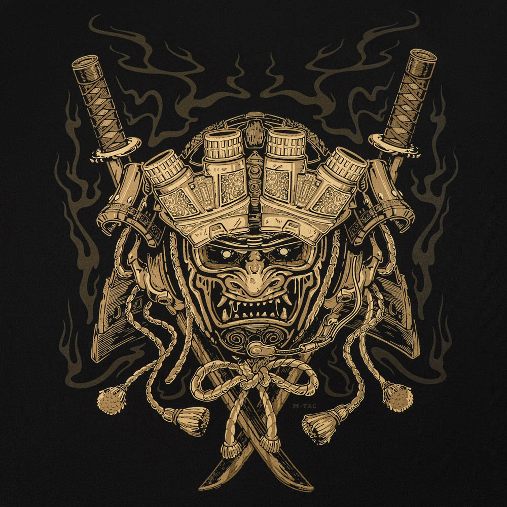 The image of samurai has long transcended being merely a part of past glories. It has established itself in modern times as a symbol of unwavering dedication to one’s path, steel-like endurance, self-control, and fearlessness in the face of death. Legends of the past always find reflection in the heirs of glorious traditions. The M-TAC GOLD SAMURAI OVERSIZE T-shirt embodies this image, forged over centuries with courage, justice, and honor. The print features a samurai figure blending past and present. His face is covered by a battle mask depicting an Oni – a demon symbolizing horror, chaos, and natural disasters. This part of the armor was meant not only to protect the samurai but also to intimidate enemies and symbolically endow the warrior with the demon’s power, creating the illusion of invincibility. The print’s color metaphorically points to the “Golden Age” – a utopian mythical era of all-encompassing happiness, prosperity, and peace. This concept is ironically contrasted with the turbulent path of the samurai, where true prosperity is not given easily but earned through trials and harsh realities of life. The T-shirt has an Oversize cut, characterized by a wide, free fit, visual effect of dimensionlessness, and versatility. Thanks to this cut, the T-shirt provides maximum comfort when worn. Made of dense 100% cotton – breathable, durable, and hypoallergenic. Flat seams prevent chafing and discomfort during active use. Material: 100% cotton Features: Oversize cut Print: MagnaColours® (Premium inks resist fading) Care Instructions: Wash at 40° Tumble dry at low temperatures Do not bleach Iron at temperatures not exceeding 150°
